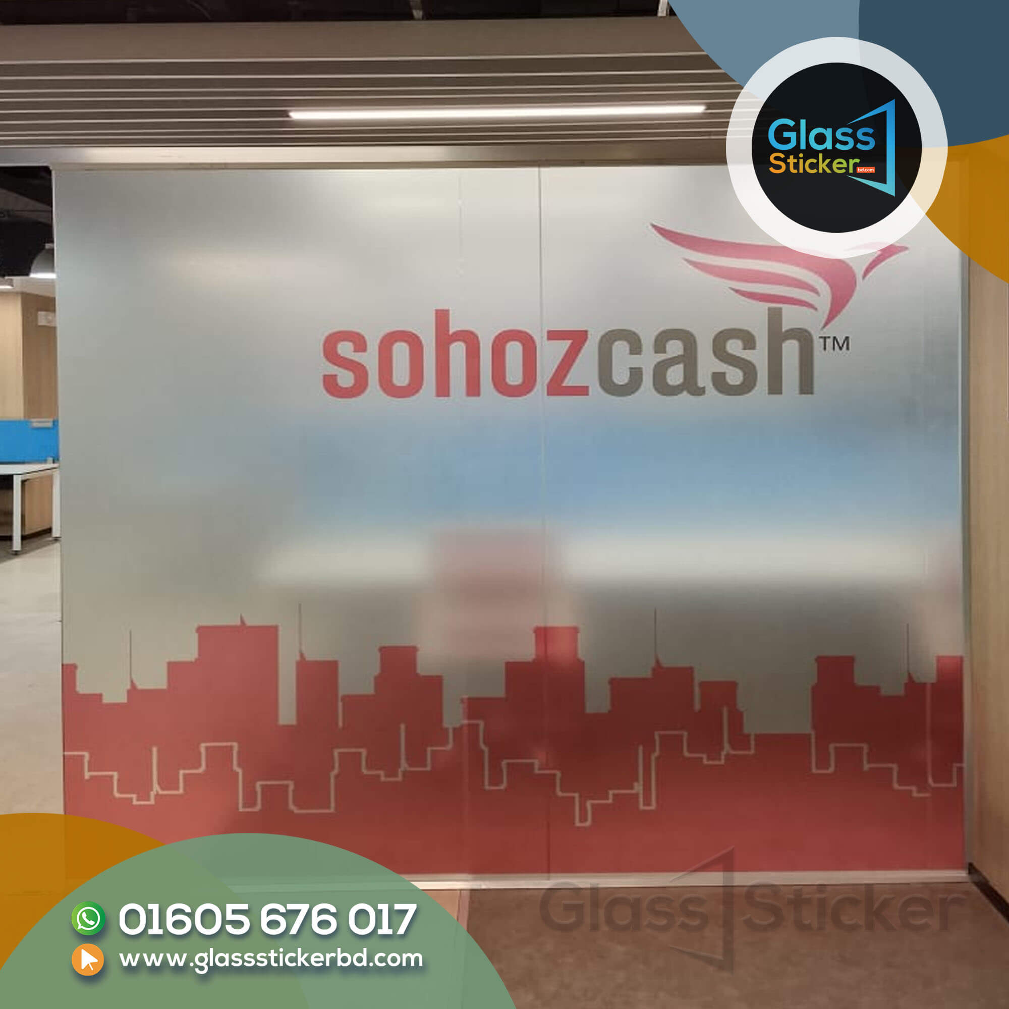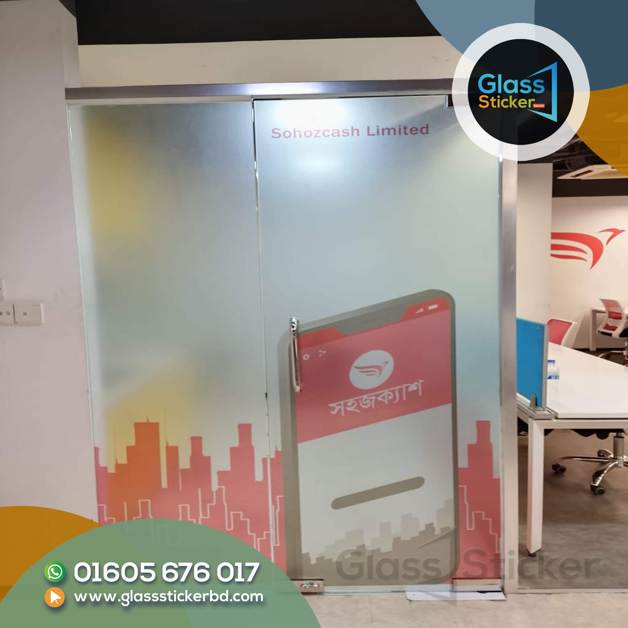 Thai glass partition glass stickers are120 taka BDT. The price will increase or decrease by the size, quantity, and installation service. Call Now for Details – 01605676017